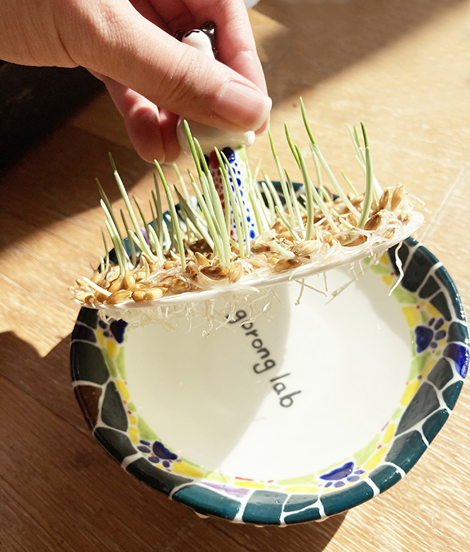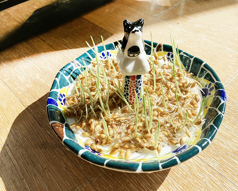 고양이의 면역력과 헤어볼 방지에 좋은 밀, 보리 새싹을 준비해 보았습니다.