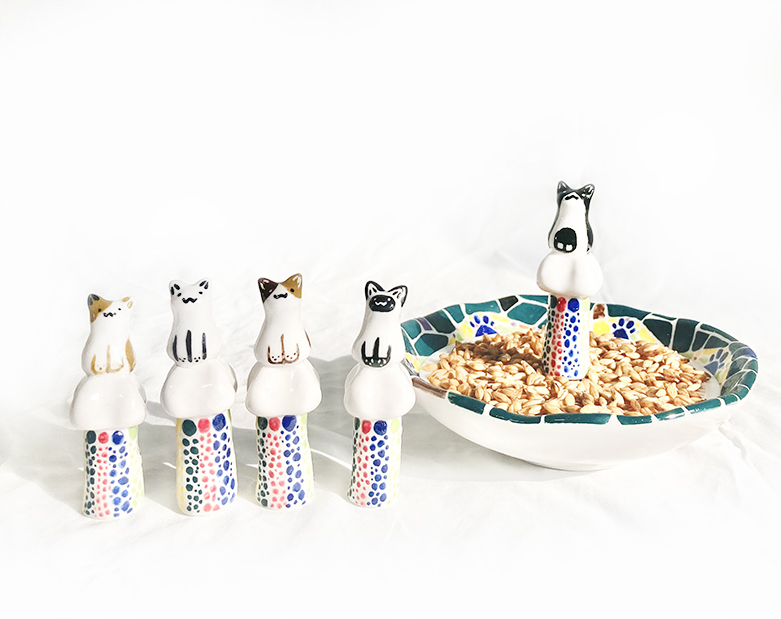 다섯 종류의 냥이들이 있으며 모두 핸드페인팅으로 제작되었습니다.